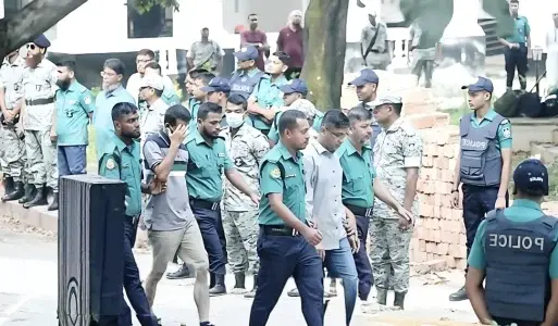 সকাল সাড়ে ৭টার দিকে সবুজ রঙের একটি প্রিজন ভ্যানে করে অভিযুক্তদের ট্রাইব্যুনালে আনা হয়। এদের মধ্যে ১৪ জন বর্তমানে চাকরিরত এবং একজন অবসরকালীন ছুটিতে রয়েছেন।